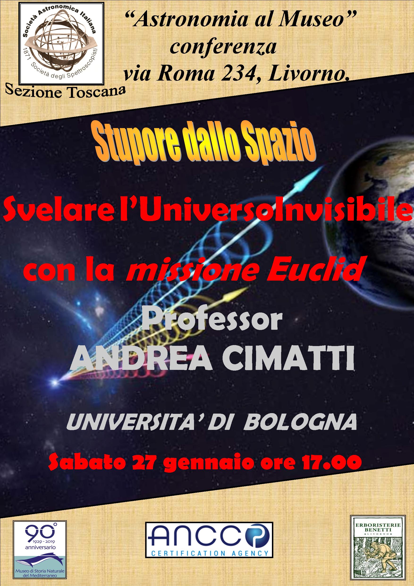 In questa occasione il professore ci parlerà di EUCLID, la missione spaziale dell’ESA, che ha lo scopo di svelare l’universo oscuro. Attraverso l’immensa quantità dei dati osservati e raccolti dalla missione gli scienziati saranno in grado ricostruire la cosiddetta “ragnatela cosmica” ovvero la distribuzione della materia nell’universo , e la sua evoluzione durante gli ultimi 10 miliardi di anni ….. e tanto altro